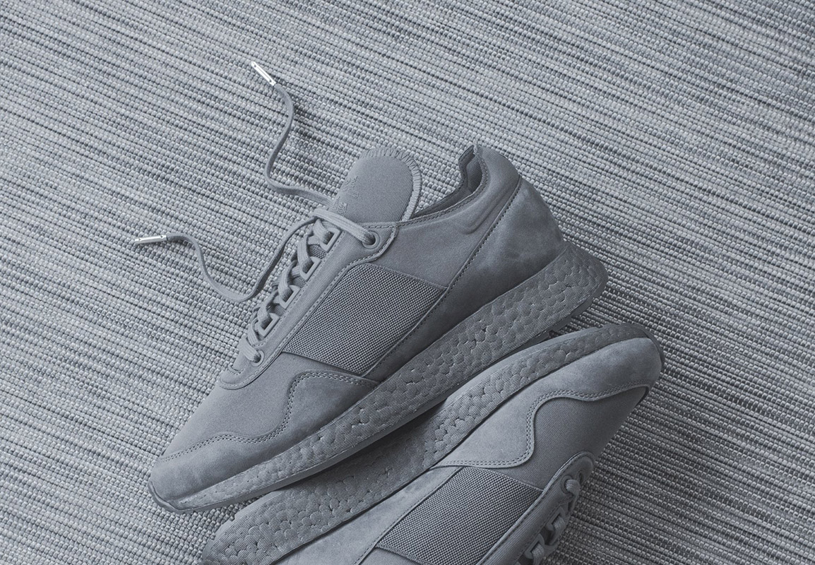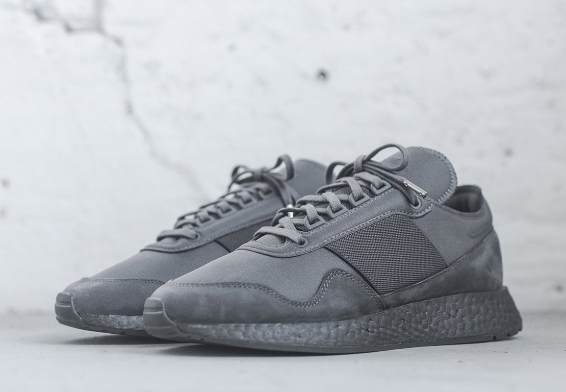 Daniel Arsham made his mark on the adidas New York in July, fitting the retro runner in frayed canvas. Arsham is now lending his artistic vision on modernized update of the original New York. The New York Present is pieced together with a neoprene underlay and nubuck leather overlays. Replacing the Three Stripes, the New York Present is sporting a canvas block on the side panel. Made for comfort, the upper is paired with a BOOST midsole.